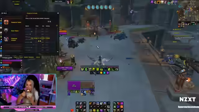03:16:48Der Fokus des Streams verlagert sich auf das Gameplay im Mythic Dungeon 'Priory'. Die Streamerin spielt als DH-Tank und kämpft mit dem Fehlen eines Death Knights in der Gruppe, was den Dungeon deutlich anspruchsvoller macht. Es kommt zu mehreren kritischen Situationen, in denen sie aggro verliert, getilted wird und über Schwierigkeiten mit bestimmten Mechaniken wie Scharfschützen und Fallen klagt. Ihre Performance variiert stark, was sie frustriert.