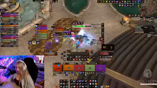01:52:54Es erfolgen mehrere Danksagungen für Resubscriptions und Spenden, darunter an 'Dr. Banana' und 'Slickes'. Die Gruppe bespricht Kicks und Interrupts während der Kämpfe, wobei die korrekte Anwendung von Fähigkeiten wie 'AOE-Kick' analysiert wird. Ein Vorfall mit einem 'Bleeding'-Effekt wird thematisiert, und die Gruppe plant, den nächsten Pull mit optimierten Controllen durch Mage-Spieler durchzuführen. Die Notwendigkeit von schnellem Reagieren auf Gruppenänderungen wird betont.