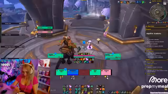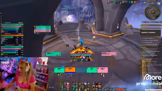 00:29:49Innerhalb des Dungeons wird die Route und die Pull-Strategie für 'Pit of Saron' besprochen. Der Streamer und sein Team planen, spezielle Mobs wie 'Bladebone' im ersten Pull zu ziehen. Es kommt zu technischen Problemen im Discord, weshalb der Server gewechselt wird. Der Streamer betont die Notwendigkeit von Dispels und Interrupts, besonders gegen den 'Terror Mage', und nutzt ein Addon, um die Fähigkeiten der Teammitglieder zu verfolgen.