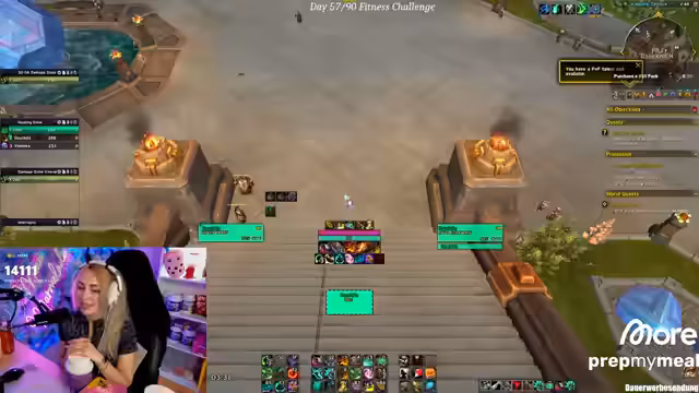 01:26:39Die Streamerin bildet aktiv Gruppen für Schlüsselrunnen zusammen, sucht gezielt nach Spielern und richtet Gruppen für Dungeons wie Dawnbreaker oder Arakara aus. Sie selbst ist noch unentschlossen zwischen den Klassen und Spezialisationen für die neue Saison. Dabei wird auch über verschiedene Charaktere wie den Frost Death Knight gesprochen, den sie wiederentdeckt, aber dessen Mechanics teilweise vergessen hat.