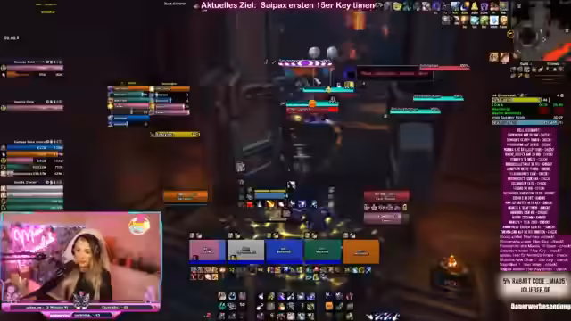 01:21:23Es erfolgt ein letzter, deutlicher Aufruf an die Chat-Teilnehmer. Der Streamer bittet jeden, der Hilfe benötigt, dies schriftlich im Chat mitzuteilen. Die gewünschten Tätigkeiten sind klar definiert: der Wunsch nach einem 14er- oder 15er-Timing, das Hitten von 3K Rio, oder die Absolvierung eines noch nicht getimten Dungeons. Das Ziel ist, eine funktionierende Gruppe zu bilden, die gemeinsam Erfolge im Keystone-Grift erzielt und allen Beteiligten hilft, ihre Ziele zu erreichen.