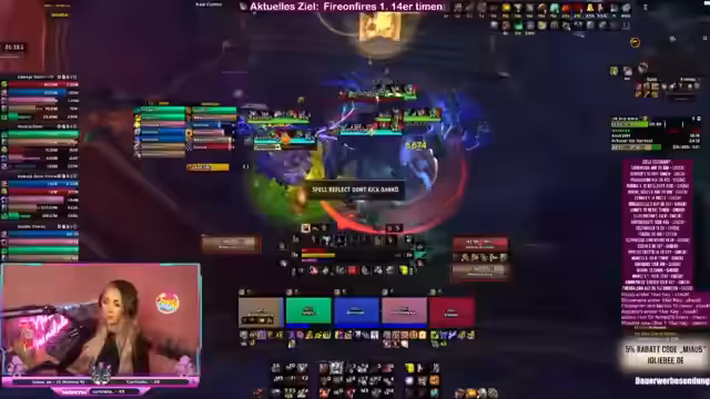 02:23:19Die Gruppe navigiert durch den Dungeon 'Neltharus' und kommt am ersten Boss an. Die Kommunikation ist präzise, mit Anweisungen wie 'gehen wir nach rechts' und 'unauffällig bleiben'. Es kommt zu einem kritischen Moment bei einem Boss, der 'AOE'-fähigkeiten einsetzt, was zu einem Heiler-Tod führt. Die Streamerin bleibt ruhig, analysiert den Fehler und bereitet die Gruppe auf den nächsten Pull vor, was ihre erfahrene Leitung zeigt.