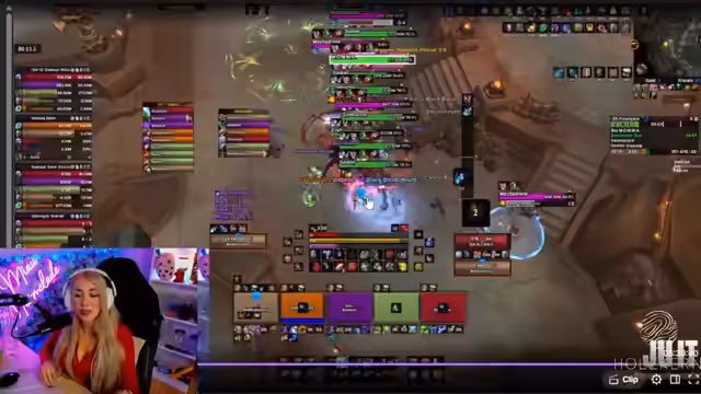 00:22:53Während des ersten Pools in Floodgate kritisiert der Streamer massiv die Leistung eines Resurrection-Schamanen-Heilers. Dieser dispelt nicht rechtzeitig, führt zu minimaler Heilung und verursacht extreme Lebensgefahr für den Tank. Der Streamer muss alle Defensiv-Cooldowns nutzen, überlebt knapp, aber die mangelhafte Heilerleistung führt zu Diskussionen über die notwendigen Fähigkeiten für Heiler in debuff-intensiven Dungeons.