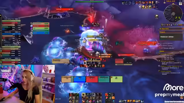 01:27:50Es wird die beeindruckende Geschichte einer 11-jährigen Spielerin namens Melina erzählt, die Void-Terror instant gekickt hat. Ihr Talent, ihre schnelle Reaktionsfähigkeit und ihr Damage werden als herausragend gelobt. Dies dient als Beispiel für den Gehirnsport, den das Spiel erfordert, und die Notwendigkeit hoher Konzentration, selbst über mehrere Stunden hinweg. Der Streamer zeigt sich sehr beeindruckt und stolz auf den jüngeren Mitspieler.