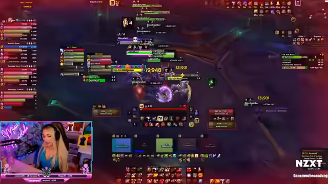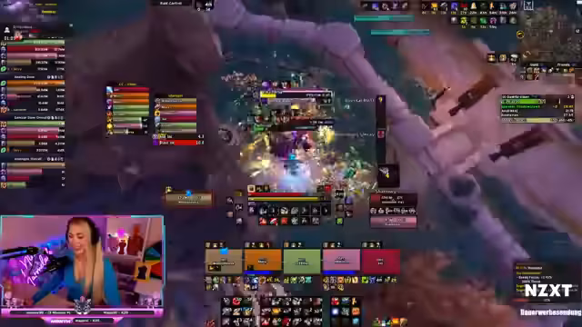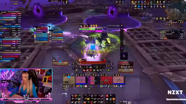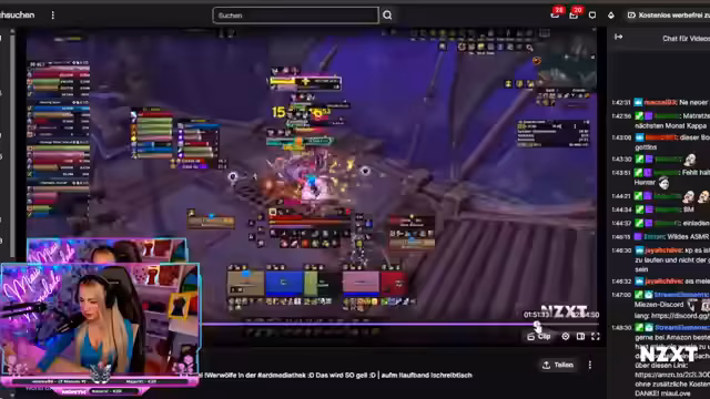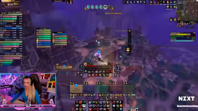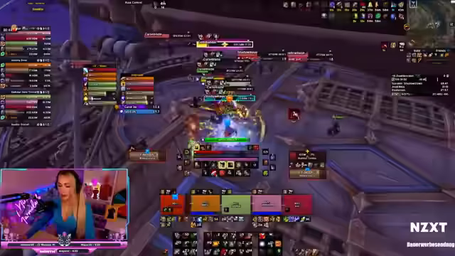 01:29:23Die Streamerin beginnt nun mit der Durchführung des geplanten M+ Dungeons 'Dawnbreaker'. Sie führt ihre Gruppe strategisch durch den Dungeon, gibt klare Anweisungen zur Bewegung und zur Platzierung von Fähigkeiten, insbesondere im Kampf gegen den Endboss, der sich auf einem schwebenden Schiff bewegt. Dabei kommt es zu einigen kritischen Momenten, in denen schnelles Reagieren und gute Team-Kommunikation erforderlich sind, um den Boss zu besiegen und den Timer zu halten. Sie wird ungeduldig, als sich einige ihrer Mitspieler nicht an die taktischen Vorgaben halten, und betont die Notwendigkeit präziser Ausführungen.