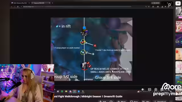 00:19:18Der Fokus verlagert sich auf den bevorstehenden Raid. Die Streamerin und ihr Partner analysieren den ersten Boss Chimaron. Es wird die Mechanik für zwei Gruppen erklärt, die sich während des Kampfes nicht zu nahe kommen dürfen. Die Streamerin, als Tank, ist für das Management der Bossposition und das Aggroziehen zuständig, während DPS- und Heiler-Rollen spezifische Aufgaben zur Schadensreduzierung erhalten.