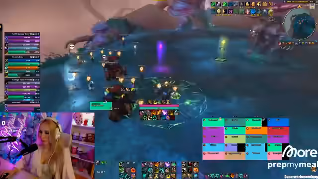 00:06:50Der Stream startet mit der Ankündigung, einen Mythic+ Key zu pushen. Die Streamerin baut spontan eine Gruppe und entscheidet sich für einen Monk-Tank, da sie den Charakter als resistent ansieht. Sie betont die Wichtigkeit von Effizienz und nutzt dabei Abkürzungen wie Battle-Net und Delves. Gleichzeitig tauscht sie sich mit Chattern über bevorstehende Events aus, wie den Abschluss des Meisters bei Midnight, und beantwortet Fragen zum Spiel.