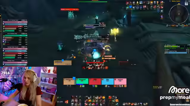 02:13:43Während des aktuellen Dungeon-Runs werden spezifische Spielmechaniken und Affixe diskutiert. Ein Mob mit Schild, der durch einen Affix entsteht, sorgt für Verwirrung, da er nicht als normaler Trashmob erkannt wird. Dies führt zu Tod und Verwirrung. Besonders der Affix 'Elfvier' wird als „fucking annoying“ und das Spiel als „schwerer“ beschrieben, da er Mob-Prioritäten verändert und nicht immer einfach zu handhaben ist. Die Streamerin äußert die Vermutung, dass dieser Affix von Blizzard fälschlicherweise als Belohnung für niedrige Schlüssel ausgelegt ist, obwohl er sich eher als Belastung anfühlt.