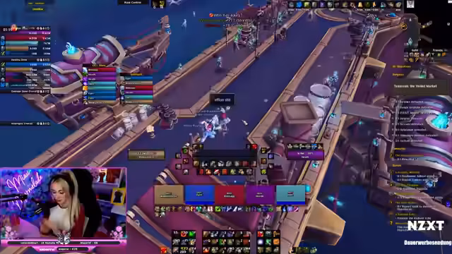 03:19:22Der Stream konzentriert sich auf das Spielen von Warlords of Draenor (WoW) M+ Keys, insbesondere auf den Dawnbreaker-Dungeon. Die Streamerin diskutiert strategische Aspekte des Spiels, wie die Verwaltung von 'Pets' bei einem Hunter, die Anpassung der Taktik aufgrund von Ingame-Bugs und die Klassenspezifische Rolle im Team. Der Chat wird aktiv eingebunden, um Namesänderungen von Spielern zu kommentieren und auf besondere Aktionen hinzuweisen, was eine enge Community-Interaktion zeigt.