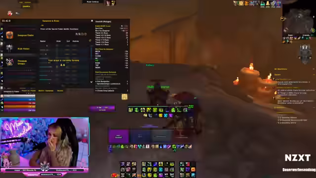 01:59:59Die Streamerin äußert große Angst vor dem 17er Dungeon Darkflame. Sie fühlt sich mental noch nicht darauf vorbereitet und fürchtet, blamiert zu werden. Sie erwähnt, dass sie den Anfangsraum noch nie clean gespielt hat und sich immer etwas wild und unkontrolliert fühlt. Der Spielstil mit dem Oracle Priest wird im Vergleich zu ihrem bevorzugten Resi Shaman als 'langweilig' und 'boring' empfunden.