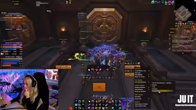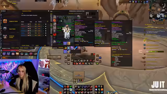 02:56:37Aufgrund von Frustration mit dem Tanking bestimmter Dungeons und dem Wunsch nach einer Abwechslung, entscheidet sich die Streamerin, ihre hochgelevelten 20er-Schlüssel als Damage Dealer (DD) zu spielen. Sie plant, dafür eine Fury-Waffe für ihren Krieger zu craften. Allerdings realisiert sie, dass sie dafür zwei Späne benötigt und aktuell nur einen besitzt. Sie überlegt, stattdessen einen anderen Build zu spielen oder eine andere Rolle zu ergreifen, um neue Schlüssel zu lernen.