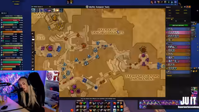 02:42:29Nach einer längeren Server-Downtime, die als fast dreistündige Wartezeit beschrieben wird, sind die Server endlich wieder online. Die Streamerin und die Zuschauer freuen sich auf das Öffnen der wöchentlichen Vaults. Es wird über die Auswahl der Belohnungen diskutiert, wobei die Streamerin zwischen verschiedenen Specs (Tank, Heiler, DD) für ihren Druiden und Krieger schwankt. Die Entscheidung fällt letztendlich auf Arms für den Krieger, in der Hoffnung auf eine Waffe oder ein Trinket, da das Tank-Gear bereits gut ist. Das erhaltene Trinket wird jedoch als unbrauchbar für DDs eingestuft, was zu weiteren Überlegungen bezüglich eines Sockels führt. Die Streamerin erhält einen 19er Eco-Dome-Key, auf den sie jedoch wenig Lust hat, da sie den Dungeon als Tank wegen bestimmter Mechaniken (Creeper, Sentinels) als stressig empfindet. Die Interaktion mit den Teammitgliedern während des Dungeons, insbesondere die Diskussion über Routen und die Erwartungshaltung der Zuschauer, mitgenommen zu werden, wird thematisiert. Es wird der Wunsch nach offener Kommunikation geäußert, da es schwierig ist, die Identität der Zuschauer im Spiel zu erkennen.