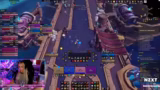 00:40:32Das Gameplay im Eko-Dome beginnt. Die Streamerin versucht, einen Boss durch einen Spell-Reflect zu kontrollieren, was aber fehlschlägt und zu einem Frontal-Schaden führt. Während des laufenden Dungeons verliert ein Gruppenmitglied, Akro, das Leben, was zu Diskussionen über die Fehlerursache führt. Die Stimmung wird angespannt, die Streamerin ist überfordert und kann nicht blocken, was die Situation zusätzlich erschwert.
