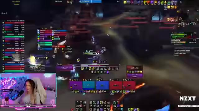 01:35:10Im Dungeon agiert die Gruppe äußerst dynamisch und kommunikativ. Der Streamer übernimmt die Rolle des Anführers (Shotcaller) und koordiniert Pulls, den Einsatz von Fähigkeiten wie Ready-Checks und Fokuszielen. Es kommt zu kritischen Momenten, in denen schnelles Reagieren erforderlich ist, um den Zusammenhalt der Gruppe aufrechtzuerhalten und den Schlüssel (Key) erfolgreich abzuschließen.