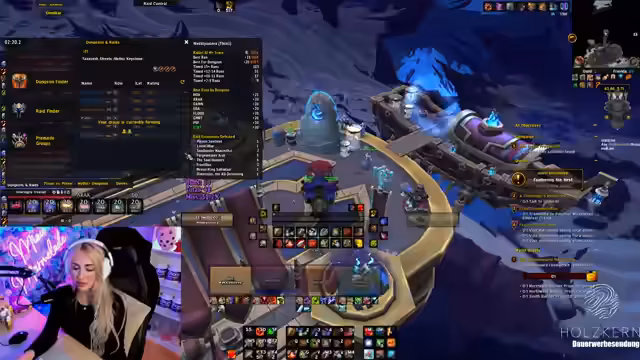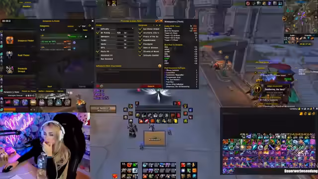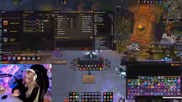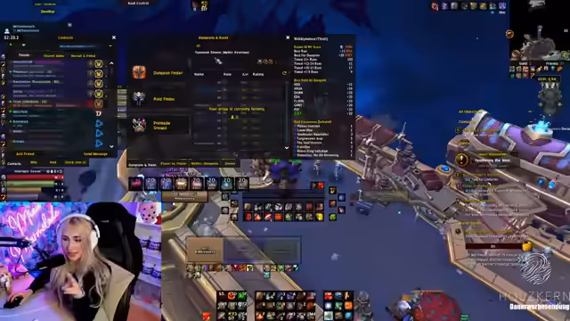 02:15:14Der Streamer organisiert Dungeon-Gruppen für 21er-Keys, insbesondere für Streets und Gambit. Es wird über die Meta diskutiert, wobei die Notwendigkeit eines DK (Death Knight) für Streets betont wird. Die Suche nach passenden Spielern (z.B. für Heiler oder DD-Rollen) wird koordiniert, wobei improvisierte Lösungen mit verfügbaren Spielern priorisiert werden, um effizient Keys zu timen und das Ecodome-Szenario zu vermeiden.