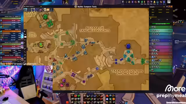 Es wurden mehrere 21er-Keys in World of Warcraft absolviert. Ziel war es, die Dungeons Echo Dome, Gambit und Streets im Zeitlimit zu meistern. Mehrere Runs scheiterten jedoch, was zu Frustration führte. Neben den Gaming-Aktivitäten wurde eine 90-tägige Fitness-Challenge gestartet.