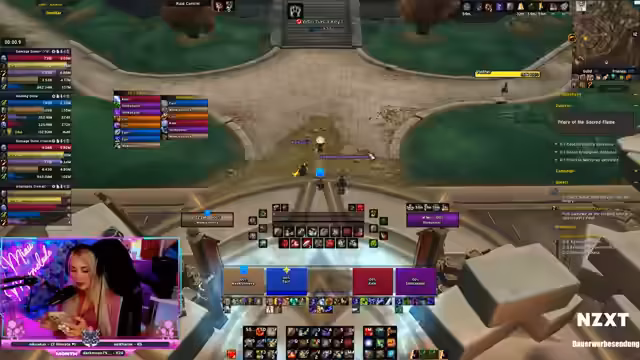 00:34:24Nach dem Raid beginnt Miaumarmelade mit einem M+ Schlüssel auf Stufe 16, der die Map Priory enthält. Sie arbeitet an einer neuen Route und passt ihren Spielstil an, indem sie mit ihrer Gruppe neue Pull-Strategien ausprobiert. Das Ziel ist es, den Schlüssel in der Zeit zu schaffen, was mehrere Versuche erfordert.