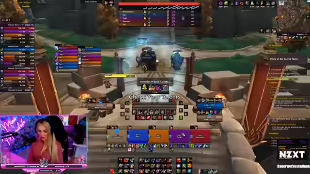 00:47:10Während des M+ Schlüssels sind einige Pucks holprig und die Gruppe muss mehrmals resettet werden. Miaumarmelade diskutiert mit der Gruppe über die Gründe für die Zeitüberschreitung und vergleicht ihre Leistung mit anderen, ähnlichen Runs. Sie analysiert das Gameplay, um Schwachstellen zu identifizieren und für zukünftige Runs zu verbessern.