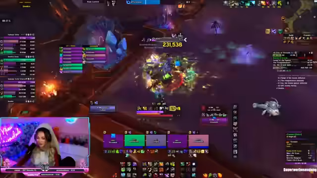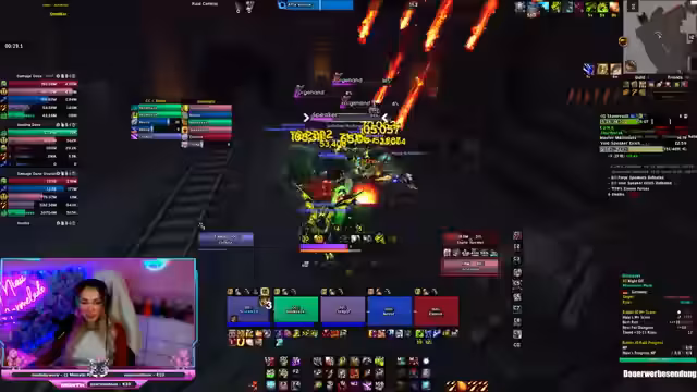 04:53:38Die Streamerin erlebt während des M+-Runs eine Reihe von Todesfällen und Frustmomente, wobei sie sich sowohl über die eigenen Fehler ärgert als auch über das Gameplay selbst. Sie ist genötigt, ihren Warlock ständig neu zu beschwören, was sie als sehr nervig empfindet. Beim Dispeln von Debuffs treten technisch unerklärliche Probleme auf, die sie auf mögliche Addon-Konflikte mit Voodoo schiebt und stattdessen die Nutzung von Cell empfiehlt. Die Game-Erfahrung wird als neu und aufregend beschrieben.