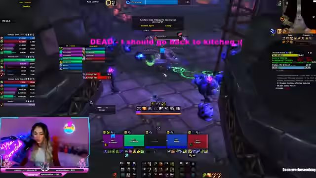 01:46:13Die Streamerin versucht, die Mechaniken ihres Warlocks besser zu verstehen, insbesondere die Bedeutung von Zahlen auf dem 'Wither'-Debuff. Es wird festgestellt, dass 'Wither' den Emulator ersetzt und dass die Streamerin diesen bisher falsch eingesetzt hat. Es werden Erfahrungen aus der Zeit diskutiert, als die Streamerin DK-Tank gespielt hat, und festgestellt, dass man als Tank mehr Chancen bekommt, in Gruppen aufgenommen zu werden. Die Streamerin berichtet, dass sie als Tank Invites hinterhergeschmissen bekommen hat, während es als DD schwieriger ist, eine Gruppe zu finden. Es wird die Frage aufgeworfen, ob es einfacher ist, Tanks oder Heiler zu finden. Die Streamerin fragt sich, ob ihr Kataklysm 'Wither' aufträgt. Es wird betont, dass man auch mit weniger Können Rio pushen kann, wenn man mehr Chancen bekommt. Die Streamerin freut sich auf die neue Season und hofft, dass die Dungeons tankfreundlicher werden. Es wird diskutiert, wann Shadowburn eingesetzt werden soll und wo die Weak Aura anzeigt, dass die Fähigkeit bereit ist. Die Streamerin stellt fest, dass sich der Zerstörungs-Hexenmeister anders spielt als früher und dass er mehr Knöpfe hat. Es wird überlegt, ob DH oder Krieger mitgenommen werden soll, wobei die Tendenz zum Bumi geht.