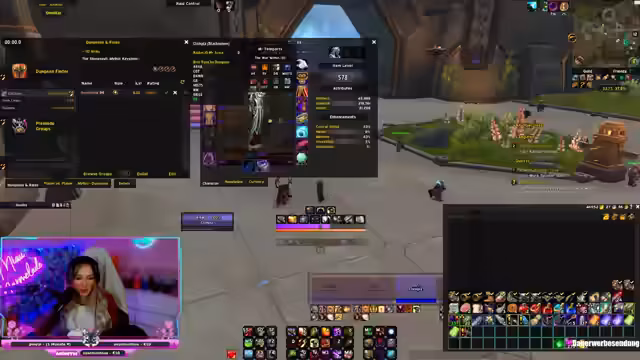 00:40:31Für den Start der Season wird eine Twink-Woche angekündigt, in der alle Chars auf Item Level 630 gelevelt werden sollen. Dies soll den Eintritt in die neue Season beschleunigen. Die Streamerin äußert ihre Frustration darüber, dass M0-Dungeons nicht direkt mit der neuen Season öffnen, und betont, dass es eine 'Loser-Woche' sein wird, in der hauptsächlich Twinks gerüstet werden.