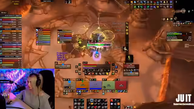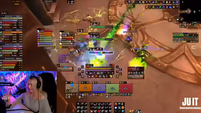 04:14:46Die Hintergrundmusik, die ein Spieler täglich im Stream hört, wird erwähnt, und es wird um Hilfe gerufen. Die Spieler stellen fest, dass sie trotz eines Todes 'ultra schnell' sind, obwohl ein Spieler behauptet, nicht gestorben zu sein und sich über 'Lügenpresse' beschwert. Es wird diskutiert, wie ein Spieler überlebt hat, indem er 'Deathstrike' gedrückt hat, und die Gruppe ist eine halbe Minute schneller. Es gibt Probleme mit einem 'Erd-Ele' und Interrupts, und ein Spieler hat keinen 'Kick' drin. Die Reihenfolge der Kicks wird besprochen, und ein Spieler freut sich, dass der 'Schamane' dran ist. Es wird über 'Probleme' und die Notwendigkeit gesprochen, 'Schnauze' zu halten, um die Kicks zu koordinieren. Ein Spieler sagt, dass der nächste Kick seiner ist, und es wird 'IBF' erwähnt.