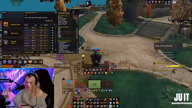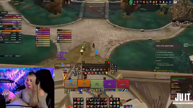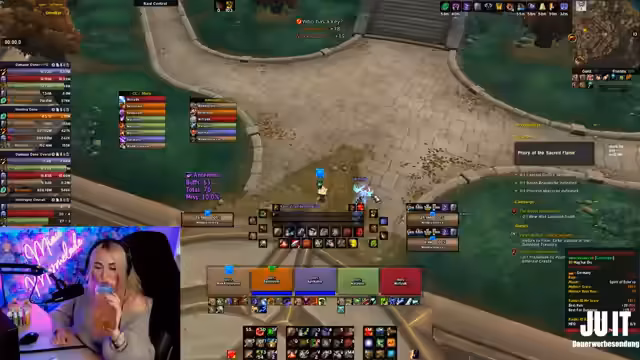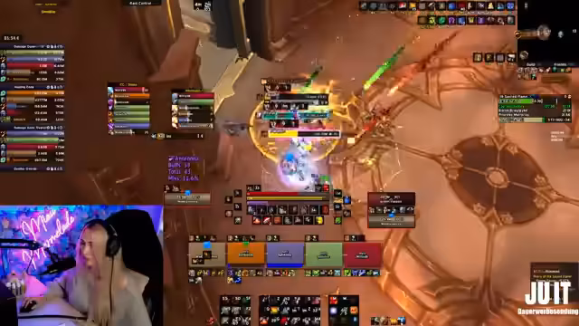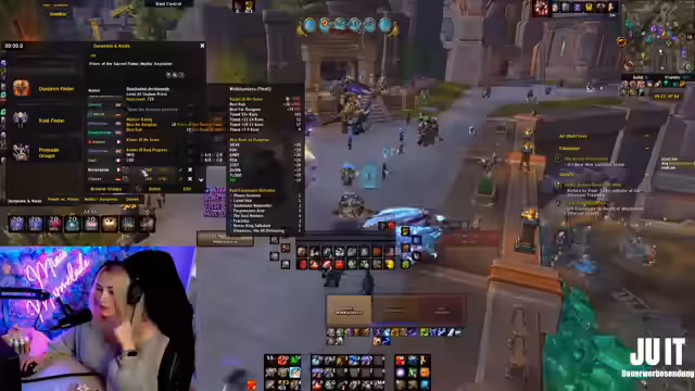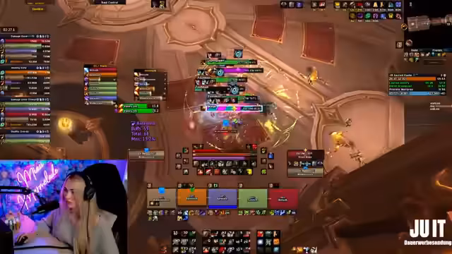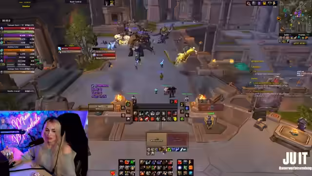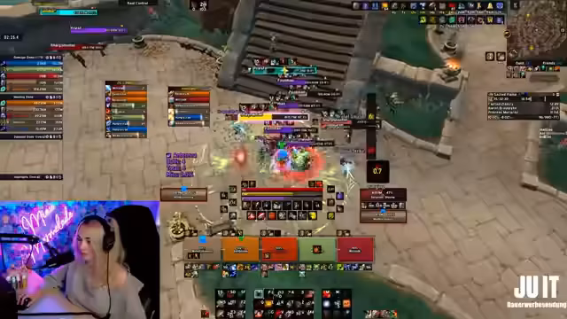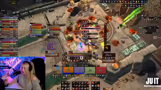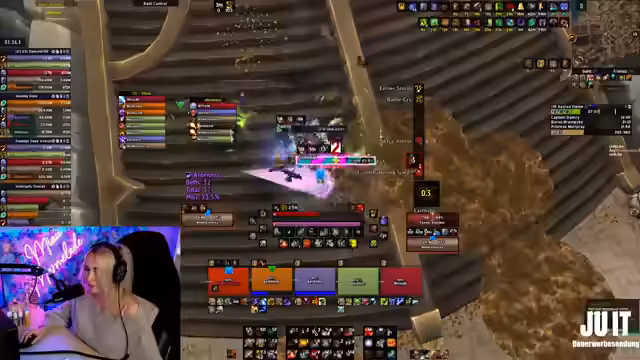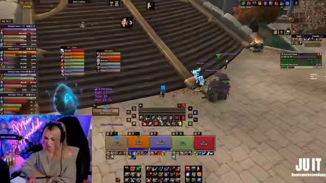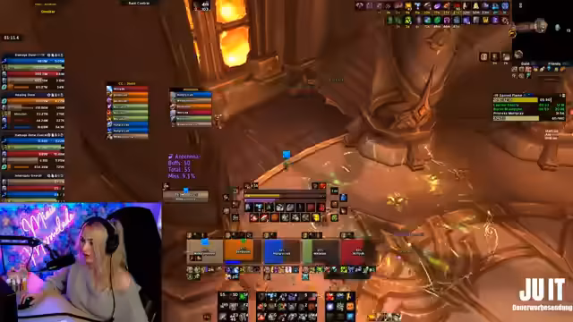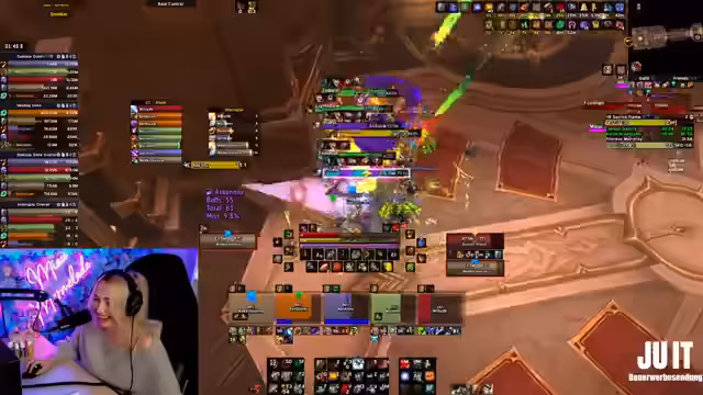 00:34:01Nach einem anspruchsvollen Pull im Dungeon, bei dem die Streamerin unerwartet viel Schaden erlitt, wird die Strategie für zukünftige Pulls angepasst, indem sie 'Shield Wall' einsetzen will. Es wird festgestellt, dass Ben noch Priory und Floodgate für seinen Resi benötigt, und die Gruppe plant, einen 19er Floodgate im Tool zu suchen, um alle auf Resi 19 zu bringen. Die Streamerin fragt im Chat nach einem 19er Floodgate Resi, idealerweise von einem Hunter oder DH. Es wird auch über die Herausforderungen gesprochen, wenn Pugs nicht gut genug sind, um bestimmte Pulls zu meistern, und wie wichtig es ist, sich auf die Fähigkeiten der Gruppe verlassen zu können. Die Streamerin teilt auch eine lustige Anekdote über Bens Schwierigkeiten mit dem MNT-Addon für Interrupts, was zu chaotischen Situationen führte. Die Gruppe plant, nach dem aktuellen Run einen 20er Floodgate von einem Mitspieler namens Apricano zu spielen, der diesen Key angeboten hat, um die Chancen auf einen erfolgreichen Abschluss zu erhöhen.