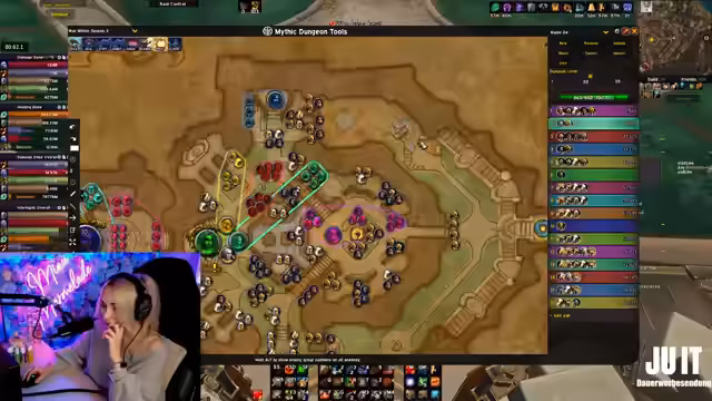 00:16:42Die Streamerin teilt ihre Begeisterung für bestimmte MDI-Routen, insbesondere eine Arakara-Route, die sie gestern gesehen hat. Sie beschreibt detailliert, wie die MDI-Teams nur bestimmte Gegnergruppen gespielt und andere geskippt haben, um Zeit zu sparen. Besonders beeindruckt war sie von einem Pull, bei dem drei 'Overs' ohne Fliegen direkt in den Miniboss gezogen wurden, was auf Stufe 23 getimed wurde. Sie plant, diese Route auf einem 19er Resi auszuprobieren, um zu sehen, wie sie sich anfühlt. Es wird auch über die Herausforderungen solcher Pulls gesprochen, wie das Herunterspringen und das Management der Gegner. Die Diskussion dreht sich auch um die Anpassung von Routen für Pugs im Vergleich zu Premades, wobei die Streamerin hervorhebt, dass bestimmte Pulls mit einer eingespielten Gruppe einfacher umzusetzen sind. Sie erwähnt auch die Wichtigkeit, schwierige Stellen in MDI-Routen zu erkennen und gegebenenfalls anzupassen, um sie für normale High-Keys praktikabel zu machen.