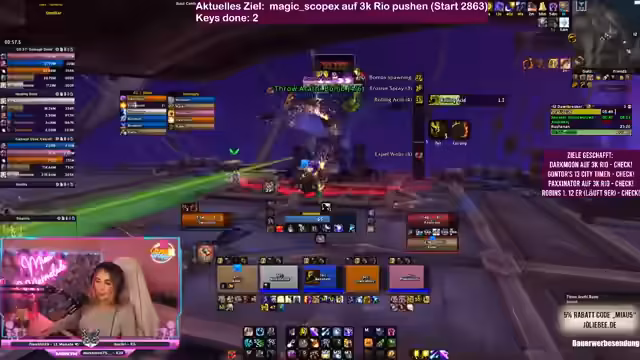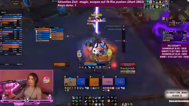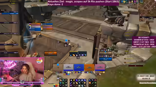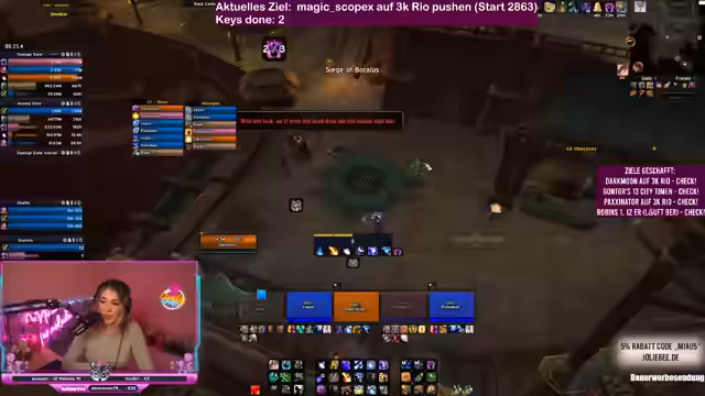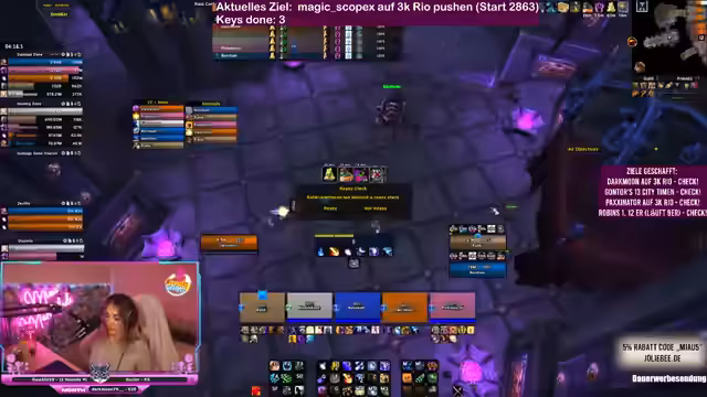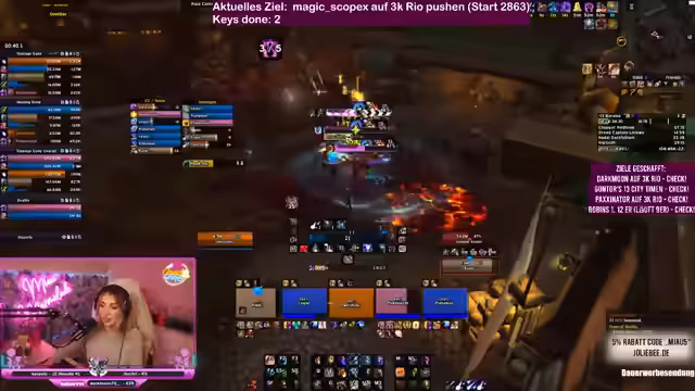 In World of Warcraft Dungeons wird intensiv an der Meisterschaft von Schlüsselsteinen gearbeitet. Ein Team koordiniert seine Aktionen, um herausfordernde Inhalte zu bewältigen und gemeinsam Punkte zu sammeln. Es geht um strategische Planung, Klassenwahl und die Bewältigung komplexer Bossmechaniken. Mit perfektem Timing und guter Kommunikation wird versucht, die Ziele zu erreichen und die Performance im Spiel kontinuierlich zu verbessern.