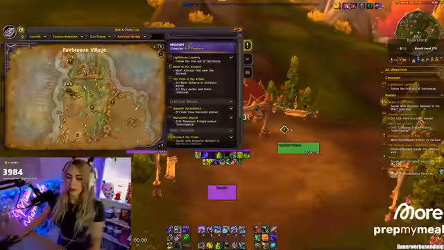 03:04:30Der Streamer teilt persönliche Erfolge mit seinem Laufband-Setup, das er seit einiger Zeit regelmäßig nutzt und durch das sich seine Kondition erheblich verbessert hat. Er berichtet, dass er bereits drei Stunden am Stück laufen kann und täglich deutlich mehr Schritte schafft als zuvor. Diese körperliche Entwicklung wirkt sich positiv auf das Gameplay aus. Währenddessen wird die weitere Vorgehensweise beim Leveln besprochen. Die Strategie ist es, die Side-Quests erst ab Stufe 88 abzugeben und parallel den Darkmoon-Buff zu nutzen, um das Leveln der verbleibenden Stufen zu beschleunigen, bevor die neue Season startet.