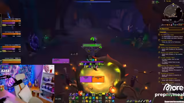 04:32:10Der Streamer beschreibt die aktuelle Methode des Levelings als sehr unterhaltsam und empfiehlt sie allen Zuschauern. Er nutzt dabei eine Pull-Strategie in der Welt und erwähnt, dass er diese für sich selbst als angenehmer empfindet als das Durchlaufen von Dungeons. Parallel wird über das neue Prey-System gesprochen, das nach Abschluss einer bestimmten Kampagne freigeschaltet wird und zusätzliche Belohnungen bietet.