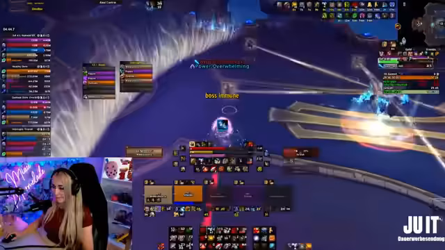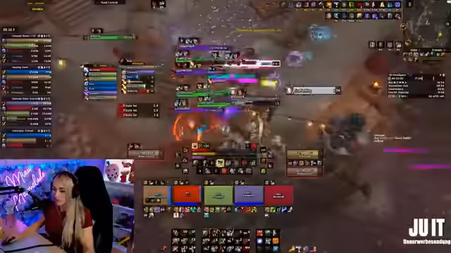 01:38:41Die Streamerin äußert Frustration über die Schwierigkeiten, geeignete Spieler für Mythic+ Keys zu finden, insbesondere im Hinblick auf die Auswahl und das Einladen von Spielern. Sie kritisiert, dass Spieler in hohen Keys (z.B. 19er) grundlegende Mechaniken nicht beherrschen, wie das Vermeiden von Toss-Angriffen oder das Nicht-Kicken von Mobs. Dies führt zu unnötigen Wipes und einem langsamen Spielfluss. Sie erwähnt auch, dass sie selbst Fehler macht, wie das Herunterfallen von Plattformen oder das Sterben in Flächeneffekten, was sie als 'außergewöhnlich schlecht' bezeichnet. Im Kontext des bevorstehenden Midnight-Add-ons spricht sie über die Notwendigkeit, ihr gesamtes Interface neu zu gestalten, da viele ihrer bevorzugten Add-ons wie Voodoo, ElvUI und Details wegfallen werden. Sie findet das Standard-Interface schwierig zu konfigurieren und hofft auf Hilfe von Freunden und der Community. Obwohl sie Voodoo als Tank-Spielerin nutzt, da sie damit gut zurechtkommt, versteht sie, dass es hauptsächlich ein Heiler-Add-on ist.