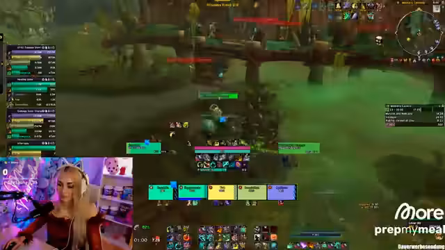 01:28:24Während des Dungeon-Laufs gibt es mehrere technische Schwierigkeiten, die den Stream beeinträchtigen. Es werden häufige Disconnects (DC) erwähnt, die die Performance der Gruppe beeinträchtigen. Der Streamer spricht über Internetprobleme, die seit mehreren Wochen bestehen, und beschreibt die Frustration darüber. Trotz der technischen Herausforderungen wird der Fortschritt im Dungeon dokumentiert, mit Fokus auf Koordination und Pull-Timing, obwohl es immer wieder zu Missverständnissen und suboptimalen Executes kommt.