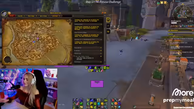 00:09:59Der Stream startet vier Stunden vor der Veröffentlichung von Midnight. Der Fokus liegt auf der Vorbereitung: Aufräumen der Taschen, Questlogs abbrechen und Entscheidung über die erste zu spielende Klasse. Die Streamerin steht zwischen einem Warrior-Tank und einem Druiden-Tank für die Kampagne, tendiert aber zum Warrior-Tank, da es ihr Lieblingstank ist. Sie plant, beide Klassen abwechselnd zu nutzen, je nachdem, auf welche sie mehr Lust hat.