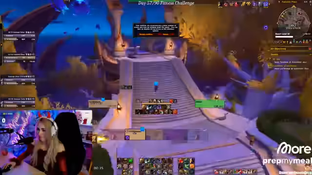 00:40:29Zu Beginn des Streams läuft eine Gruppensuche für einen 16er Dungeon. Die Streamerin und ihre Mitspieler sind bereits gut vorbereitet, haben hohe Schlüsselstufen und wurden im Schlüsselloft bereits getimed. Sie stehen kurz davor, eine Gruppe zusammenzustellen, um sofort nach dem Start von Midnight loszulegen. Die Stimmung ist hoch, da es der Release-Party zu sein verspricht.
