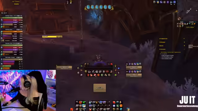 02:01:00Der Streamer fragt einen Zuschauer, ob er eher gemütlich spielt oder auf Rio pusht, und es wird über die Notwendigkeit von Details zur Schmerzvergleichung gesprochen. Eine humorvolle Diskussion über das Tragen von Boxershorts vor dem PC entsteht, wobei der Streamer seine Meinung äußert, dass es nicht gemütlich ist. Eine kurze, humorvolle Unterbrechung für eine Pinkelpause wird angekündigt, wobei der Streamer scherzhaft vorgibt, ein Mann zu sein, um nicht zu wissen, dass er eine Frau ist. Nach der Pause wird über die lustige Vorstellung gesprochen, wie es wäre, wenn er schreiben würde 'ich muss kurz Pipi'. Die Transmogs der Spieler werden kommentiert, und ein Zuschauer erwähnt, dass er auch auf 19er Keys gehasselt hat. Es wird über vergangene gemeinsame Spiele mit einem Zuschauer gesprochen, wobei der Streamer sich an ein Spiel in 'Nequatic Wake' vor vier bis fünf Jahren erinnert. Die Schwierigkeiten bei der Koordination von Fähigkeiten wie 'Grip' werden thematisiert, wobei der Streamer frustriert ist, dass Teammitglieder oft mehrere Pings benötigen, um eine einfache Aktion auszuführen. Die Gruppe bereitet sich auf weitere Pulls vor, wobei der Streamer die Anzahl der zu spielenden Gegner angibt und die Teammitglieder um ihre Bereitschaft bittet.