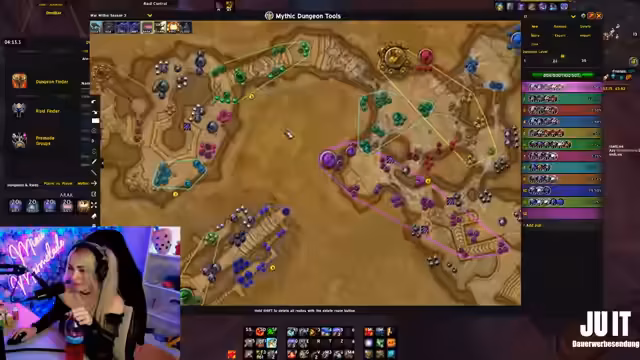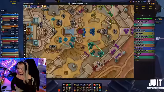 01:41:29Die Gruppe diskutiert die optimale Vorgehensweise in einem Dungeon, insbesondere die Entscheidung, ob man zum Slasher rennen oder eine andere Route wählen sollte. Die Möglichkeit, den Key zu rerollen, wird angesprochen, und es wird ein 'Nice Call' für eine erfolgreiche Strategie gelobt. Es wird auch über die Stimme des Streamers gesprochen, die seit einigen Tagen ohne ersichtlichen Grund weg ist, obwohl keine Krankheit vorliegt. Die Beta von World of Warcraft und die damit verbundenen Änderungen am User Interface (UI) werden thematisiert. Es wird erwähnt, dass es neue Addons gibt, die es ermöglichen, das Standard-Interface anzupassen, was als unnötig empfunden wird, da es dem ursprünglichen Ziel von Blizzard, weniger externe Tools zu nutzen, widerspricht. Die Screenshots der Beta-UI werden als 'kacke' beschrieben. Es wird auch über die Schwierigkeiten gesprochen, die Agro bei Gegnern zu halten, und die Notwendigkeit, genaue Laufwege zu finden, um unerwünschte Pulls zu vermeiden. Die Frage, ob Details (Damage Meter) im Spiel gut oder schlecht sind, wird aufgeworfen, wobei argumentiert wird, dass sie sowohl zur Verbesserung als auch zur Offenlegung von Underperformance beitragen können. Die Gruppe plant, einen 19er Overseer-Dungeon mit drei Spielern zu versuchen, was als riskant, aber machbar eingeschätzt wird. Es wird auch über die Abwesenheit eines Damage-Meters in der Beta gesprochen und die geringe Aussagekraft von Tierlisten in den ersten IDs eines Patches.