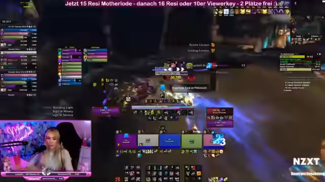 00:30:30Nach dem gescheiterten ersten Versuch ändert sich die Zusammensetzung der Gruppe. Die Streamerin wechselt von ihrem Tank zu einem Damage-Dealer. Sie passt die Route im Dungeon an, um einen einfacheren Start zu gewährleisten. Es wird ein weiterer Versuch gestartet, der sich jedoch durch ein Reset-Problem beim Pullen schwierig gestaltet. Die Gruppe muss umdisponieren und den Verlauf des Schlüssels anpassen, um den Bosskampf überhaupt erreichen zu können.