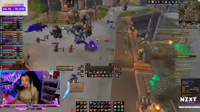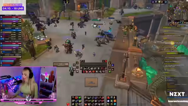 00:32:55Die Streamerin wartet auf den Heiler 'Shizu', der erst frühstücken muss, bevor er den Dungeon betreten kann. Sie stellt fest, dass ein hungriger Heiler nicht zu spaßen ist und die Wartezeit verlängert. Gleichzeitig kündigt sie an, dass der Stream am Samstag mit vielen Giveaways von Sponsoren wie NZXT und Blizzard gefüllt sein wird, die sie verlosen wird.