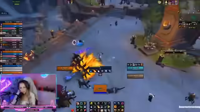 01:17:13Das Team spielt einen Mythic+ Schlüssel und koordiniert ihre Aktionen. Es kommt zu Diskussionen über die Zuweisung von Buffs und Heilen, wobei der Fokus darauf liegt, die Effektivität der Skills zu optimieren. Ein Teilnehmer äußert seine Freude über erhaltenen Schmerzenschild und betont die strategische Notwendigkeit, bestimmte Aktionen nicht zu casten, um den Bosskampf zu bestehen. Die Stimmung ist fokussiert, wird aber durch persönliche Kommentare überbrochen.