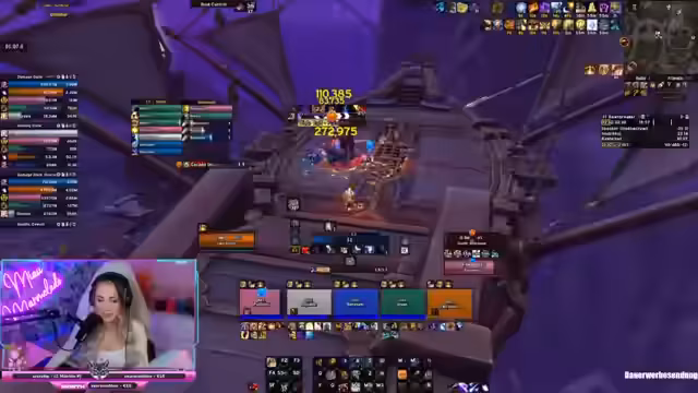 00:51:40Während des Dungeon-Laufs werden die Mechaniken kritisch bewertet. Die Streamerin äußert ihre Frustration darüber, dass es ohne Sprachchat besonders chaotisch wird, wenn bestimmte Mechaniker wie der 'Hüttenmeister' den Boss nicht sofort umbringen. Sie argumentiert, dass es weniger fehleranfällig sei, den Mechaniker auszulassen und stattdessen einen sauberen Durchgang zu spielen, um den Push-Zielwert zu erreichen.