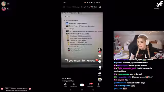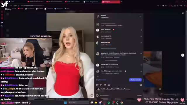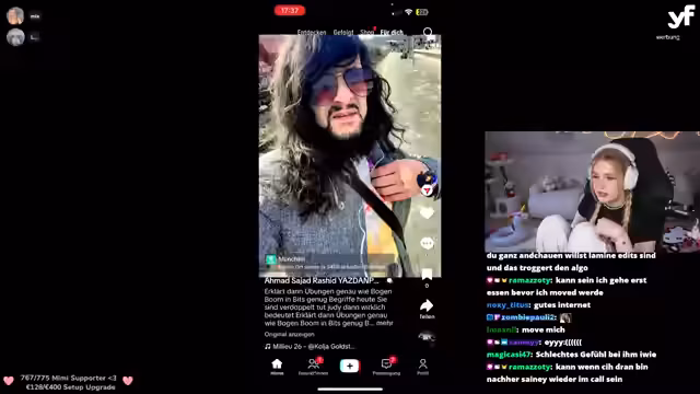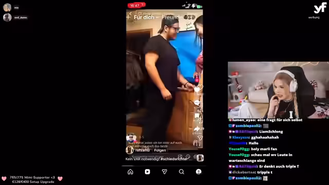 01:27:43Nach technischen Vorbereitungen und einer kurzen Pause beginnt die eigentliche Phase der TikTok-Kontrollen. Die Streamerin, begleitet von Mitgliedern wie 'Firma', 'Emil' und 'Liquid', beginnt, die Profilseiten der Zuschauer zu analysieren. Die Reaktionen sind gemischt und reichen von harmlosen, lustigen Inhalten bis zu fragwürdigen und 'kranken' Beiträgen. Die Streamerin äußert sich unmittelbar zu dem Gesehenen, kommentiert bei manchen Usern den Mangel an 'Women in Red' und bei anderen den übermäßigen Konsum von 'Mia-Lia-Inhalten'. Dabei wird auch ein technischer Crash eines Teilnehmers thematisiert.