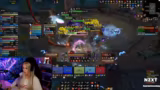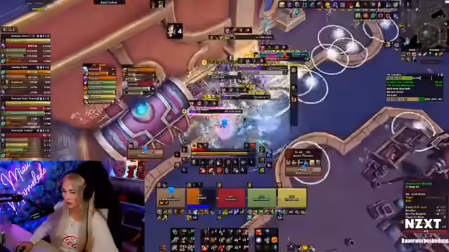 00:34:38Mit einer festen, techno-lastigen Playlist im Hintergrund beginnt die Streamer aktiv eine neue Gruppe für ein Schlüsselstein-Dungeon zu suchen. Sie trifft auf einen 'Fury'-Krieger namens Gowanovic und ist skeptisch, weil der Spieler vor kurzem seinen Schlüssel zurückgesetzt hat und jetzt als 'Resi' (Resilient-Tank) spielt. Sie vermutet, der Spieler habe vorsätzlich eine neue Gruppe aufgemacht, um den Pre-Made-Heiler zu loszuwerden.