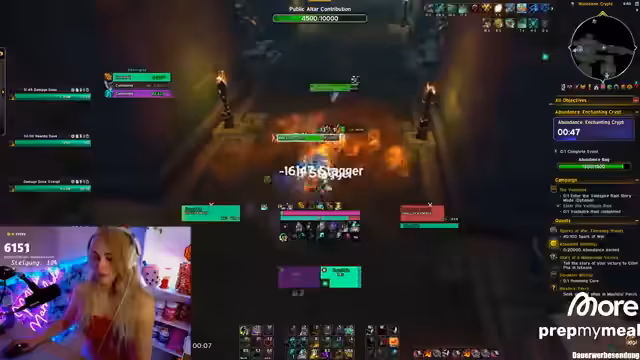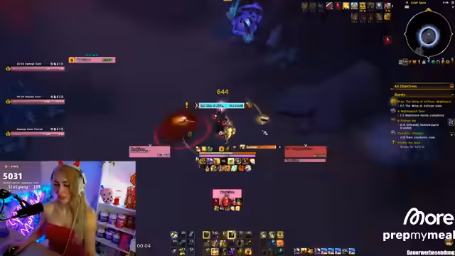 04:42:21Die Gruppe für die bevorstehenden Aktivitäten wird zusammengestellt. Der Streamer plant, eine Gruppe für einen mythischen Heart Sequest zu öffnen und erwähnt, dass alle Classen einbezogen werden sollen. Es wird über die Rollenverteilung gesprochen, wobei ein Spieler als Heiler vorgesehen ist. Der Streamer ist sich nicht sicher, ob die Heiler-Fähigkeit eines Spielers ausreicht, und erinnert an eine erfolgreiche Dungeon-Begehung am Vortag. Auch eine Diskussion über die Priorität des Fokus-Kicks bei einem Boss findet statt.