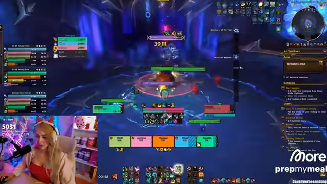 00:39:24Parallel zum Hauptprogramm wurde ein Raid für die Gilde am Abend geplant. Es wurde eine Gruppe mit einem Tank, drei DDs und einem Heiler für den Delves Boss Level 11 zusammengestellt. Streamer boten einen DD-Charakter an, falls noch ein Platz frei ist. Er erwähnte, dass sein Heiler gut ist, aber sein DD-Spiel nicht das beste ist, dennoch mittlere bis hohe Schadenswerte erwartet.