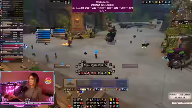 00:10:00Der Stream beginnt mit der Begrüßung der Chatmitglieder. Die Hauptaufgabe des Tages ist es, den Account 'Darkmoon' von 2733 auf 3000 Key-Score im Spiel World of Warcraft zu bringen, um die 3K-Marke zu erreichen. Der Streamer plant, dies mit einem vorhandenen 14er Key in Arakara zu realisieren. Die aktuelle Season dauert voraussichtlich noch etwa einen Monat. Der Streamer kündigt an, in den kommenden Wochen sowohl morgens als auch abends zu streamen, um尽可能多的 Ziele zu erreichen.