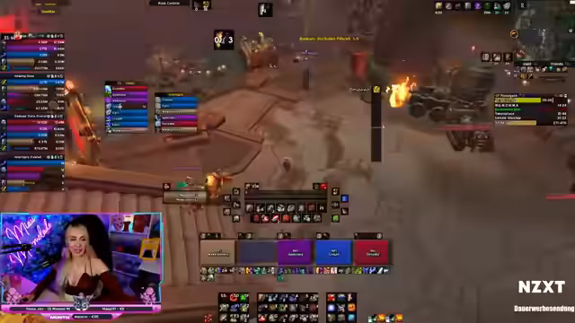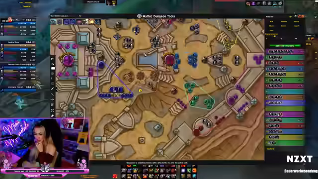 03:00:08Der aktuelle Dungeon-Verlauf gestaltet sich als äußerst herausfordernd. Die Gruppe kämpft mit einem problematisischen Trash-Pull und muss strategische Entscheidungen treffen, um nicht zu sterben. Es wird über Alternativen gesprochen, wie man den Rest der Trash-Mobs separat anvisieren könnte. Die Anspannung steigt, da der Tank seine Ressourcen nahezu aufgebraucht hat und die Gruppe nur knapp überleben kann, was die Komplexität des aktuellen Schlüssels verdeutlicht.