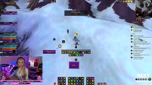 01:00:33Nach einem Reload der Software und der Behebung der technischen Probleme geht die Streamerin wieder zu ihrer Quest über. Sie erklärt dem Chat, dass sie drei von fünf Kapiteln für den Umhang absolvieren muss und erwähnt den Tausch ihres Plater Add-ons. Die Streamerin zeigt frustration über das wiederholte Scheitern an Questen, während sie gleichzeitig über persönliche Themen wie ihren Verlobungsantrag und anstehende Hochzeitsplanungen spricht.