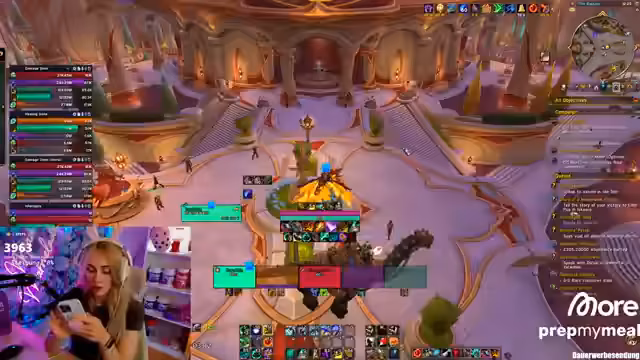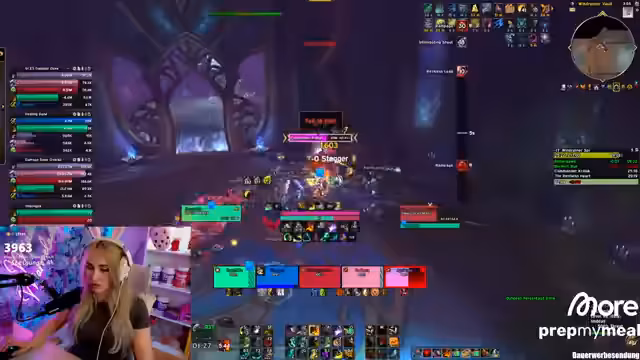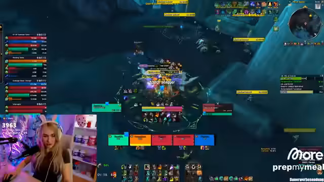 01:36:10Die Streamerin wechselt zu taktischen Aspekten des Spiels. Sie gibt eine wichtige Anweisung für ihre Mitspieler in zukünftigen Runs: bei Trash-Mobs immer Platz zu lassen, damit die Heiler freie Sicht (LOS) auf den Tank haben können. Sie reflektiert auch über die Konfiguration ihrer UI, da die %-Anzeigen für die Boss-Gesundheitsanzeige zu klein sind und sie um eine Erinnerung bittet, diese anzupassen.