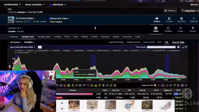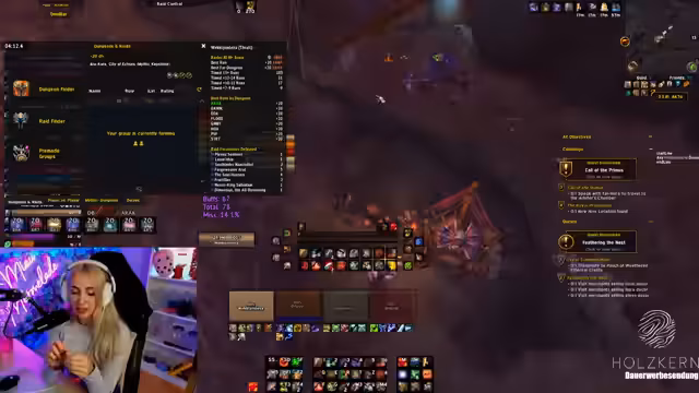 00:11:54Der Fokus liegt auf der Optimierung des Frost-Death-Knight-Charakters. Der Streamer analysiert aktuelle Ausrüstungswerte wie Crit (21.000) und Mastery (24.000), diskutiert Embellishments und ring-spezifische Crafting-Pläne. Es geht um Entscheidungen zwischen verschiedenen Ring-Optionen mit Crit-Mastery-Kombinationen und der Notwendigkeit, Schlüssel (Keys) für Upgrades zu farmen. Ziel ist der Bau eines optimierten Rings für bessere Leistung in Mythics.
